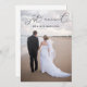 Um cartão de anúncio de elopemento de casamento moderno, para que a família e os amigos saibam que os seus planos de casamento mudaram e tu fugiste. A frente está cheia de sua foto de casamento. No topo, "recem casados" é escrito em um script na moda com pequenos corações sobre "j" e "i" e abaixo você pode adicionar seus primeiros nomes ou o nome do Sr & Sra. No verso, você pode personalizar sua mensagem em mais detalhes. Dica da foto — uma foto com cores claras no topo mostrará melhor o roteiro.