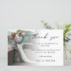 Casamento De Foto Moderno Minimalista Obrigado. Um tamanho maior de 5,5" x 8,5" a um preço orçamentário, em um STOCK CARD SEMI GLOSS de 110 lb, excelente de convites, aproximadamente na mesma espessura de um cartão postal, ou um estoque LINEN elegante de 110 lb - para um luxo, ligeiramente mais fino, com um valor de excelente. OBSERVE QUE OS ENVELOPES OPCIONAIS SÃO UM POUCO MAIORES EM TAMANHO A 6,75" x 9" aprox. Este alternativo de tamanho de orçamento também está disponível em outras opções de papel. O papel FELT de 100 lbs é colorido por buff, NÃO branco, então adiciona um toque rústico. O estoque de papel MATTE de 80 lb é branco brilhante, para impressão nítida, excelente para os menus e programas, enquanto o papel SATIN de 80 lb é fino e leve, ideal para gabinetes Basta substituir a imagem de amostra pela sua. Obrigado por estar no estilo de escrita manual definido e pelo resto do texto que você pode personalizar facilmente. Uma camada de opacidade de tons graduada está em cima da sua foto para que seu texto possa ser visto como parcialmente sobreposto.