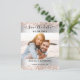 Um casamento moderno Salve o cartão com fotos de Data. Um fundo com aspecto fino de prata decorado com brilho rosa dourado, brilhos. Personalize e adicione sua foto, detalhes do casamento.