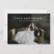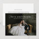 Um cartão de agradecimento de casamento moderno e elegante com mensagem de amor e agradecimento e detalhes charmosos. As cores podem ser alteradas. O verso inclui uma mensagem de agradecimento genérica que você pode personalizar para cada convidado ou remover completamente se preferir escrever à mão seu agradecimento.