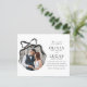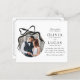 Convites de casamento elegantes, preto e branco. Apresentando um arco de aquarela pintado à mão, com a fotografia de um casal circular à esquerda, em conjunto com a tipografia da serifa do eterno e a inscrição de scripts à direita. A parte traseira exibe um quadro no estilo do tíquete com os detalhes do evento. Ideal para gravata negra ou eventos formais. Como parte da seleção do orçamento do Zazzle, esta folha não vem em tamanhos padrão de cartão. Para colocar este design em uma placa padrão, você pode encontrá-lo na coleção ou usar o Zazzle Make Machine para transferi-lo para o seu produto preferido. Localize itens correspondentes na coleção ou visite a loja para mais convites para casamento.