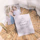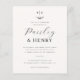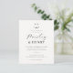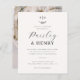 Este convite elegante de casamento apresenta um monograma personalizado no topo da carta. O monograma combina as iniciais dos nomes dos casais com uma ilustração rústica de esprig de folha desenhada à mão. O primeiro nome é escrito na caligrafia de script chic, e o segundo nome é escrito em letras clássicas de serif. Por baixo, a data, o ano e a hora são impressos em três linhas, seguidas do local e endereço. Há um divisor de linha horizontal para separar as seções do texto. Na parte inferior da carta, há espaço para adicionar informações adicionais sobre a recepção, o código de vestimenta ou qualquer outra coisa. Cartões que se revertem a uma foto de noivado de sangramento de cheio do casal, fazer que estes peçam uma guarida tesoura. Um design simples e elegante, perfeito para casamentos formais e negras. Como parte da seleção orçamentária no Zazzle, esta folha não é um tamanho de convite padrão ou qualidade de papel. Se quiser que este design num cartão de convite o encontre na coleção ou utilize o Zazzle Make Machine para o transferir para o produto da sua escolha. Veja a coleção ligada nesta página ou visite a nossa loja para mais convites para o casamento.