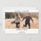 Casamento de Foto Minimalista Salve o Cartão de Data Simples casamento minimalista salve a data com uma foto do casal e algum texto preto. A parte traseira desta opção para salvar o nosso cartão de data apresenta uma mensagem curta do casal.