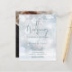 Um elegante convite de casamento, com figuras de tipografia de escrita de caligrafia e flocos de neve delicados que se encontram nos seus nomes personalizados, data especial e detalhes do evento de celebração de casamento em um fundo de geada de inverno e sua foto especial no verso. Projetado por Thisnotme©