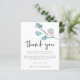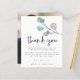 Casamento De Foto Em Eucalyptus Moderno Obrigado. Um alternativo de 4,5 pol x 5,6 pol com preço inferior. Disponível em um STOCK DE CARTÃO SEMI-GLOSS 110 lb, que é a opção padrão (mais espesso para convites), OU um STOCK de PAPEL THINNER FINISH 80 lb FINISH (ideal para gabinetes). Os envelopes são um extra opcional e são ligeiramente maiores que o tamanho da placa. Estilo contemporâneo com uma ramificação de solteiro de eucalipto artístico em tons suaves e cor-de-rosa rosa no canto superior direito. Obrigado Está definido num estilo informal de escrita manual e é colocado abaixo da folhagem juntamente com a sua mensagem e nomes que pode facilmente personalizar. Troque facilmente a sua foto favorita no verso como recordação para os seus convidados. Você pode mudar as cores do texto e do plano de fundo para qualquer uma de suas opções para corresponder ao seu tema de cor do casamento.