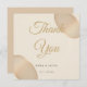 Um cartões de agradecimentos de casamento minimalista, projetado para complementar o convite correspondente. Ele apresenta um fundo de marfim macio, acentuado com duas formas de seixo semitransparentes em bege quente e tons de champanhe colocados nos cantos. O design sutil adiciona um toque de sofisticação enquanto deixa o texto editável para sua mensagem de gratidão.
