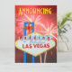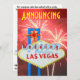 O casamento de Las Vegas anuncia noivas e noivos que fogem ou têm uma pequena cerimônia de casamento em Nevada e querem anunciar seu casamento e incluir familiares e amigos como convidados para uma recepção em data posterior. Este design de convite inclui o famoso sinal de boas-vindas de Las Vegas e fogos de artifício de celebração.