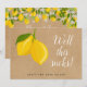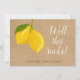 Este cartão de convite de casamento de limões e folhagens com tema rústico e divertido pode ser personalizado com os detalhes da cancelação em um fundo kraft rústico. O verso tem informações adicionais! Criado por Thisisnotme©