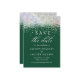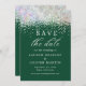 Casamento brilhante de luxo verde escuro Salve os cartões de data apresentam um fundo verde escuro acentuado com brilho iridescente e seu costume salva as informações de data. Personalize com seu texto editando o texto nas caixas de texto fornecidas. Projetado para você por ©Evco Studio www.zazzle.com/store/evcostudio