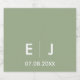 Bandas de guardanapo clássicas e elegantes em verde-sábio e branco com suas iniciais e data de casamento em texto minimalista tradicional.
