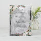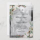 Estes convites de casamento modernos e de férias apresentam a sua própria fotografia pessoal cobrindo completamente o fundo. Uma camada branca contém todos os seus convites de casamento, assim como suas iniciais, e buquês de flores de cor-de-água de tendência decoram os cantos.