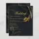 Casamento com baixo orçamento - um convite de casamento impressionante com samambaias tropicais de preto e ouro -