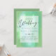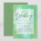 Convite de casamento moderno com campos de modelo de texto em ambos os lados e uma nuvem de cor azul esverdeada.