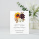Um bonito buquê de outono de um girassol amarelo, um púrpura e uma hidrangea branca estão no topo deste convite de casamento moderno. Faz parte da coleção Sunflower e Burgundy.