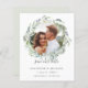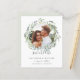 BAIXO CUSTO SALVAR A DATA - ENVELOPES NÃO INCLUÍDOS. A Elegante botânica salva as datas apresenta uma foto de noivado favorita cercada por uma coroa redonda de oliveiras e folhas em uma elegante paleta de aquarelas e personalização verde com seus nomes, data de casamento e local.
