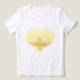 Casal caminhando pela praia Destino Tropical Misty Yellow Elegance Heart Beach Casando com T-shirts de amor. Perfeito para o casamento de um navio de cruzeiro tropical.