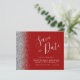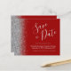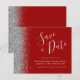 Este elegante orçamento salve a data card apresenta uma borda cintilante prateada. O texto personalizável combina o script de escrita manual de cinzas prateadas, fontes copperplate e itálico em um fundo vermelho crítico. O verso apresenta um criminoso e design prateado correspondentes.