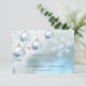 Cartões de resposta de casamento com tema de inverno maravilhoso elegante e único. Neve e flocos de neve com luzes cintilantes, enfeites em branco, fundo azul prateado. Modelos editáveis para que você possa adicionar seu próprio texto.