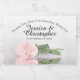 Estas belas etiquetas de garrafas de vinho espumante miniatura são perfeitas como uma adição ao seu saco de permutas de noivas, ou simplesmente por agradecer aos convidados e à família. A design esplêndida apresenta uma imagem de um rosa cor-de-rosa-rosa-pincel, manchado, solteiro longo, que se encontra sobre o seu lado refletindo numa piscina de água. O texto diz: Obrigado por celebrar conosco! Há espaço para os nomes do casal, a data do casamento e o tipo de vinho espumante ou outro conteúdo da garrafa.