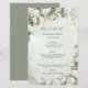 Elegantes rosas brancas em um fundo verde sage. Convite lindamente desenhado que pode ser personalizado com o seu nome. Selecione o botão "personalizar" para alterar o estilo, cor e tamanho da fonte.