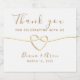 Rótulo de agradecimento de casamento simples, elegante e minimalista, com coração de corda dourada, nomes dos noivos e letra de caligrafia moderna.