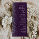 A borda esquerda deste elegante programa de casamento moderno apresenta um design brilhante falso prateado. O texto personalizável combina o script de escrita manual de cinzas prateadas e o tipo de letra sans serif num fundo roxo escuro.