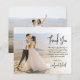 Orçamento, Elegante Mínimo Moderno, Cartões de agradecimentos De Casamento Barato De Barato Fotográfico Sobreposto De Script De Caligrafia Manuscrita. *** NOTA: é preferível recortar a foto frontal antes de carregá-la, e o casal é colocado no lado esquerdo da foto. *** Na moda, modelo de cartão de casamento com 1 foto na frente e 1 foto no verso. Texto "Obrigado" em bonito letra tipografia de fontes ou escrita de caligrafia. É fácil adicionar o seu nome e obrigado à sua mensagem. Se precisar de ajuda ou item correspondente, entre em contato com o designer!