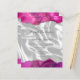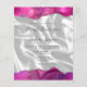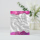 As bordas de cima e de baixo deste elegante convite de casamento moderno apresentam uma cor de água magenta, borda agitada com falso brilho prateado. O texto personalizável combina escrita manual, fontes sans serif e itálicas em cinzas de carvão em uma imagem de fundo de seda branca. O lado inverso apresenta um agato magenta correspondente e design de seda branca.