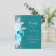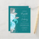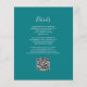 O canto esquerdo deste elegante convite para casamento moderno apresenta um buquê floral em tons de turquesa e azul claro, aparado com folha de falso prateado e folhagem falsa e aspergido com brilho de prata. O texto personalizável combina o script de escrita manual de cinzas de prata pálida, fontes copperplate e itálico em um fundo de turquesa. Adicione mais detalhes no verso, juntamente com um código QR para ajudar seus convidados a visitar seu site de casamento.