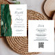 A borda esquerda deste elegante convite de casamento moderno apresenta uma esmeralda verde aquarela agate borda com falsa brilho dourado. O texto personalizável combina o script de escrita manual, o compósito e as fontes itálicas em verde esmeralda em um fundo branco. O verso fornece espaço para detalhes do casamento em um fundo branco sólido, junto com um código QR que os convidados podem digitalizar para visitar seu site e RSVP.