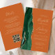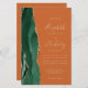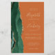 A borda esquerda deste elegante convite de casamento moderno apresenta uma esmeralda verde aquarela agate borda com falsa brilho dourado. O texto personalizável combina manuscrito dourado, fontes em copperplate e itálico em um fundo laranja queimado ou robusto. Adicione mais detalhes no verso, juntamente com um código QR para ajudar seus convidados a visitar seu site de casamento.