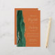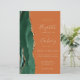A borda esquerda deste elegante convite de casamento moderno apresenta uma esmeralda verde aquarela agate borda com falsa brilho dourado. O texto personalizável combina manuscrito dourado, fontes em copperplate e itálico em um fundo laranja queimado ou robusto. Adicione mais detalhes no verso, juntamente com um código QR para ajudar seus convidados a visitar seu site de casamento.