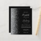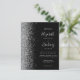 A borda esquerda deste elegante convite de casamento moderno apresenta uma borda falsa de prata. O texto personalizável combina a escrita manual de cinzas prateadas pálidas, fontes copperplate e itálico em um fundo preto. Adicione mais detalhes no verso, juntamente com um código QR para ajudar seus convidados a visitar seu site de casamento.