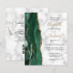 A borda esquerda deste elegante convite de casamento moderno apresenta uma esmeralda verde aquarela agate borda com falsa brilho dourado. O texto personalizável combina um script de escrita manuscrita dourado com fontes em preto e em itálico em um fundo branco e em mármore de cinzas. Adicione detalhes adicionais à parte traseira, juntamente com um código QR para ajudar os convidados a visitar o seu site de casamento.