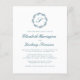 Este elegante design de convite de casamento apresenta um monograma de escrita azul teal rodeado por uma coroa botânica de arte de linha. Os nomes aparecem no script teal, com o resto do texto na fonte de serif clássica. O verso fornece espaço para detalhes do casamento em um fundo azul-lacre sólido, junto com um código QR que os convidados podem digitalizar para visitar seu site e RSVP.