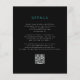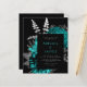 Este elegante e modesto convite de casamento apresenta um buquê floral romântico e luxuoso, em azul verde, com folha de cor prateada e folhagem brilhante num fundo negro. Personalize o texto das cinzas de cor e prateada em fontes na moda em um retângulo escuro. O verso fornece espaço para detalhes do casamento em um fundo preto sólido, junto com um código QR que os convidados podem digitalizar para visitar seu site e RSVP, o que economiza o custo de imprimir e enviar cartões RSVP separados.