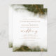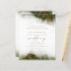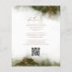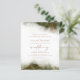 Este elegante convite de casamento apresenta um design de borda de cor aquosa verde-oliva na imitação de mármore veinado com folha de ouro falsa, desaparecendo gradualmente no fundo branco. A palavra "casamento" aparece em escrita manuscrita dourada, com o texto remanescente em maiúsculas de serifa douradas. O verso oferece espaço para detalhes do casamento, junto com um código QR que os convidados podem digitalizar para visitar seu site e RSVP.