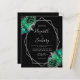 Este elegante convite de casamento moderno apresenta um quadro geométrico prateado decorado com flores esmeraldas verdes e prateadas em fundo preto. O texto personalizável combina a escrita manual imétrica de cinzas prateadas, a placa de cobre e as fontes itálicas. Adicione mais detalhes no verso, juntamente com um código QR para ajudar seus convidados a visitar seu site de casamento.