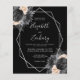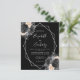 Este elegante convite de casamento moderno apresenta um quadro geométrico prateado, decorado com pessegueiros, flores pretas e prateadas em fundo preto. O texto personalizável combina a escrita manual imétrica de cinzas prateadas, a placa de cobre e as fontes itálicas. Adicione mais detalhes no verso, juntamente com um código QR para ajudar seus convidados a visitar seu site de casamento.