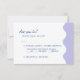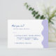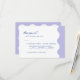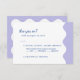 Este cartão RSVP de casamento está cercado por uma bonito e ondulada fronteira. Ele usa cores calmas como a lavanda, inspirada em campos de lavanda. As fontes divertidas e na moda adicionam um toque de elegância, e algumas palavras são destacadas em azul brilhante para um pop de cor divertido. Este convite não é apenas para pedir que você venha; ele define o clima para uma celebração alegre e encantadora. É perfeito para casais que amam a natureza e querem que seu casamento seja divertido e elegante.