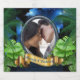 Um portal espacial mágico, místico, futurista, papel de carta de fantasia com produtos de presente de buquê de flor de seda azul, violeta e branca para muitas celebrações para personalizar.