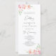 Deixem seus convidados sentirem a elegância e alegria simples do dia do seu casamento com este belo design moderno com buquês florais cor-de-rosa pincelado e coral com sotaques dourados. Os títulos "Casamento de", "Cerimônia", "Festa de casamento" e "Obrigado" estão escritos em um roteiro de cinzas escuras na moda. Você pode personalizar a saudação de boas-vindas, seus nomes, data de casamento e eventos de cerimônia na frente e a mensagem de festa de casamento e obrigado pessoal no verso, tudo em uma simples e elegante tipografia coordenadora. Perfeito para os casamentos de verão, ao ar livre e jardim. Este programa foi projetado para coordenar com nossa coleção de Casamento Floral Floral de Cor Rosa, Coral e Dourada.