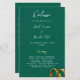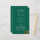 Um esquema de casamento ousado e elegante com um rico fundo verde esmeralda com anéis de casamento de ouro no canto inferior. Um design sofisticado e eterno, perfeito para cerimônias clássicas e formais.