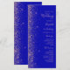 A borda esquerda deste elegante programa de casamento moderno apresenta um rosa dourado faux glitter design. O texto personalizável combina letras rosa pálidas, letras em copperplate e fontes itálicas em um fundo azul real.