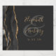 Este design de casamento moderno apresenta um agate de aquarela preta e borda falsa de ouro na borda esquerda. Personalize-o com os nomes dos casais em um elegante guião de manuscrito dourado sobre uma grande seringa de cinza e em fundo preto, com a data do casamento abaixo.
