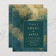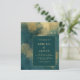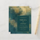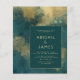 Este elegante e modesto convite de casamento apresenta um moderno fundo de abstrato e água dourada. Personalize o texto dourado em fontes na moda em um retângulo verde escuro. O design abstrato é repetido na parte traseira da placa.