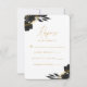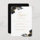 Flores negras modernas e quic e cartão de resposta rsvp foliar apresentam belos scripts de caligrafia e falsos quadros geométricos dourados com confetti. Convites e acessórios de correspondência podem ser encontrados nesta coleção de casamento elegante.