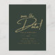 Casamento moderno, verde e Dourado, salve a data com código qr e modelos de texto, frente e verso. Monocromo moderno elegante.