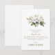 Este design elegante de agradecimento apresenta delicadas flores brancas com folhas verdes suaves, combinadas com texto sincero que expressa gratidão a amigos e familiares por compartilharem um dia de casamento especial. O fundo branco limpo e tons cinza sutis criam um clima sofisticado e romântico perfeito para papelaria pós-casamento. Ideal para celebrar novos começos com um estilo botânico atemporal.