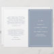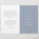 Programa de Casamento Simples dobrado com um design moderno, mas elegante, com seu monograma inicial junto com seus detalhes cercados por uma fina fronteira no cobrir frontal. A dentro tem a festa de casamento do lado esquerdo e a ordem da cerimônia do lado direito. Todos os elementos de design estão em azul e branco empoeirados e podem ser alterados na ferramenta de edição de design. Um design chic e na moda que é excelente para um casal minimalista. Estes programas de casamento baratos são impressos em folhas de papel para uma opção de orçamento de excelente.